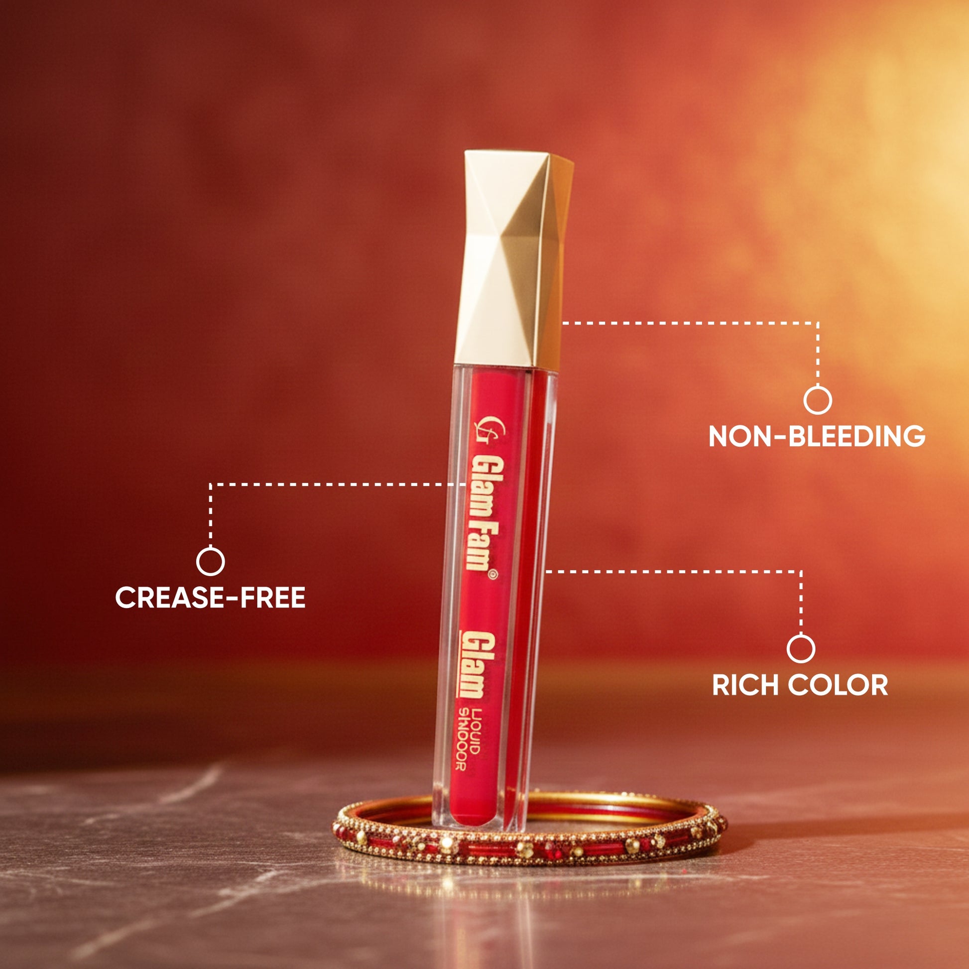 TRADITIONAL DESIGN: Elegant liquid sindoor with a precise applicator tip and premium gold-toned cap for easy and accurate application